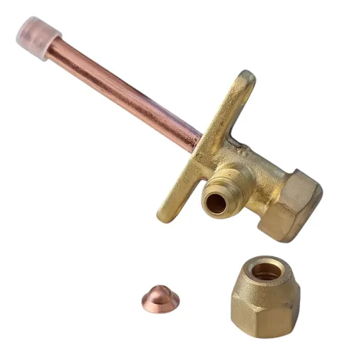 La Válvula Split 1/4" Recta R410 es un componente esencial en sistemas de aire acondicionado tipo split que utilizan gas refrigerante R410A. Diseñada para facilitar tareas de mantenimiento, carga y diagnóstico, esta válvula ofrece una conexión segura y eficiente.
